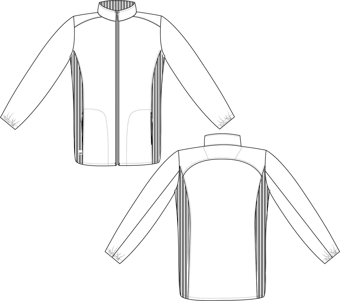 • Kontrastfarvet rib i sider og ved krave