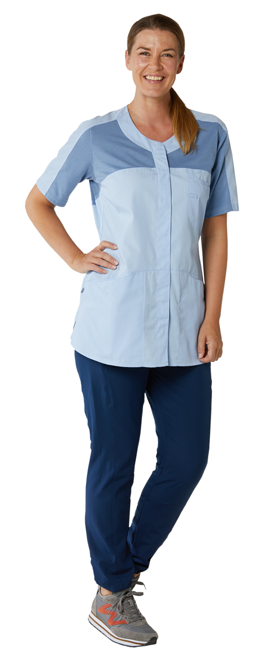 • Del af ryg og front er indsat som strik for endnu bedre komfort og fleksibilitet for bruger