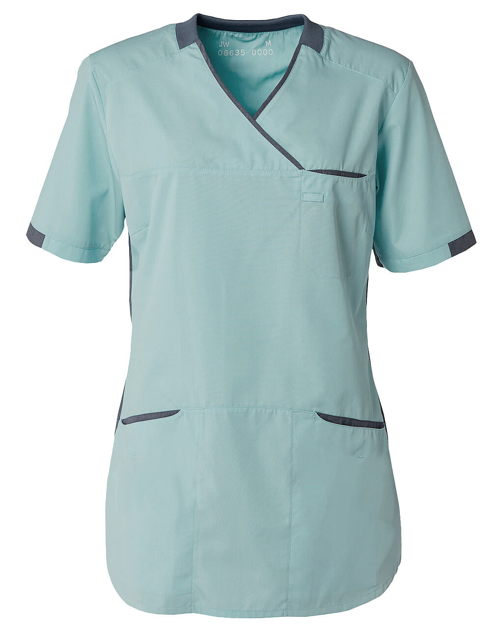 • Kontrastfarve i sider, ved lommer, ærmer og hals