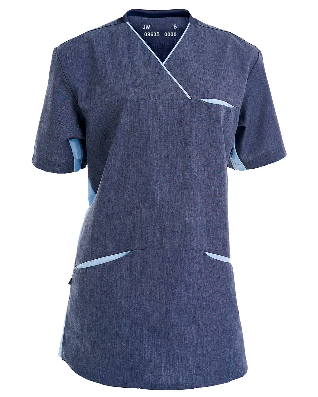 • Kontrastfarve i sider, ved lommer, ærmer og hals