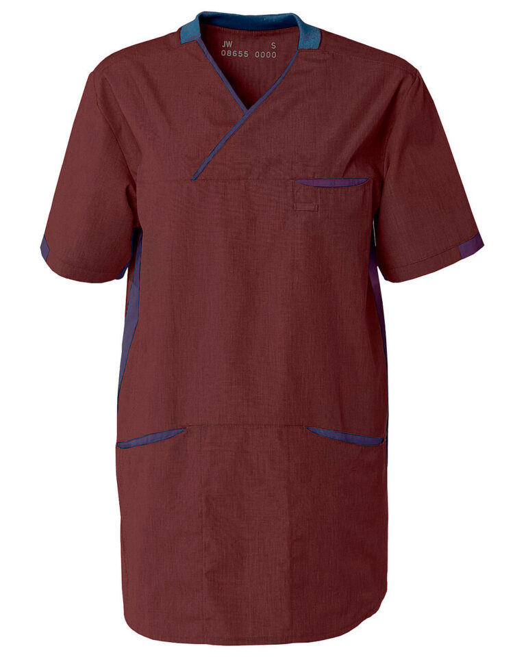 • Kontrastfarve i sider, ved lommer, ærmer og hals