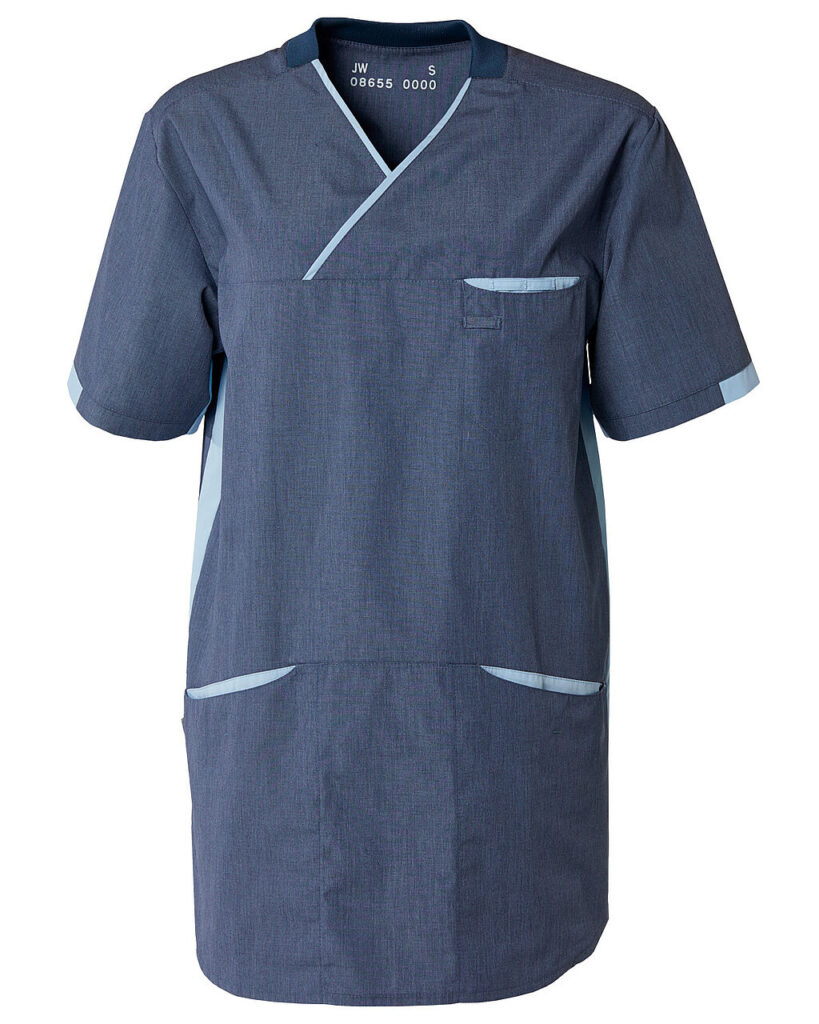 • Kontrastfarve i sider, ved lommer, ærmer og hals