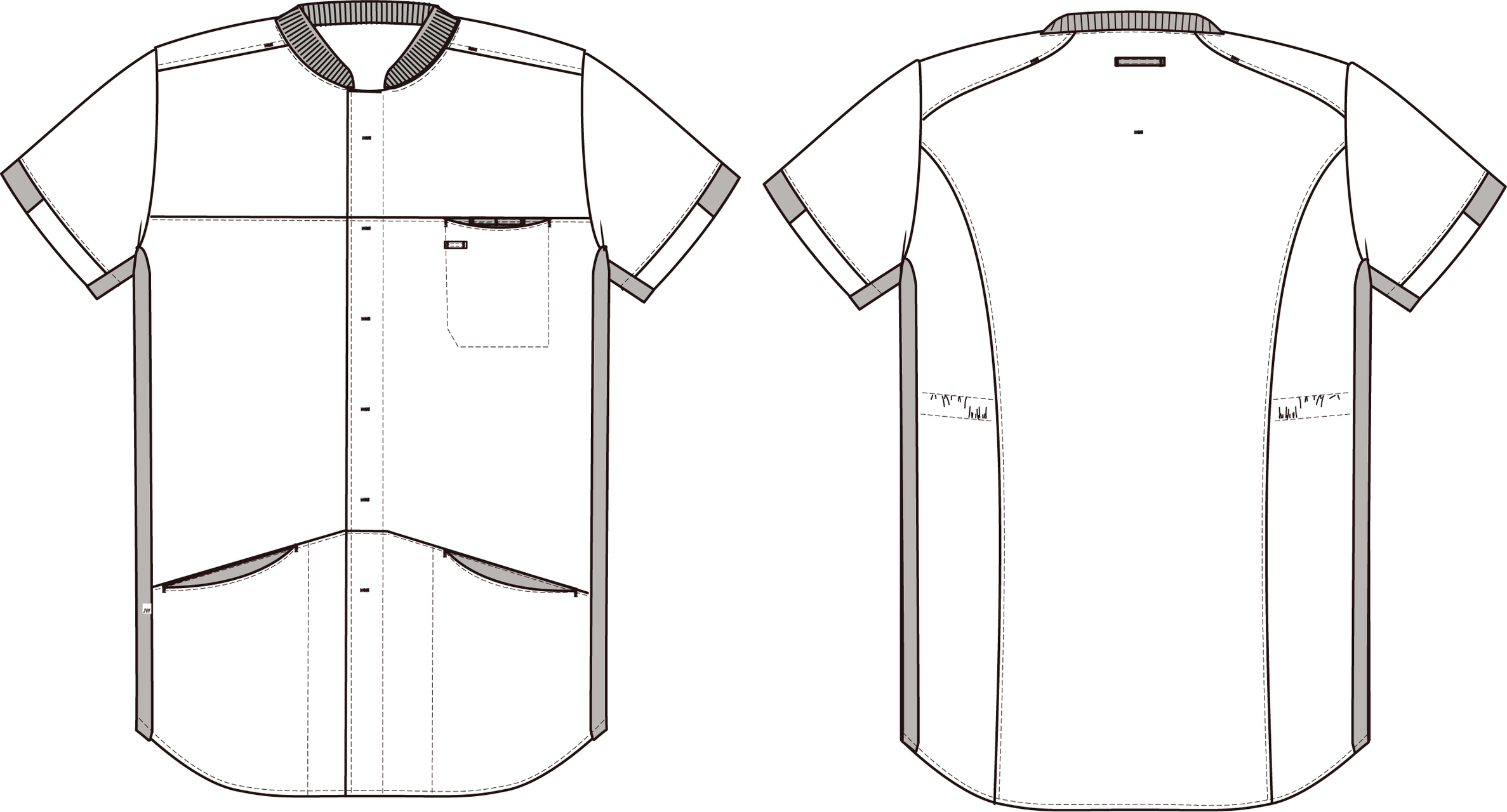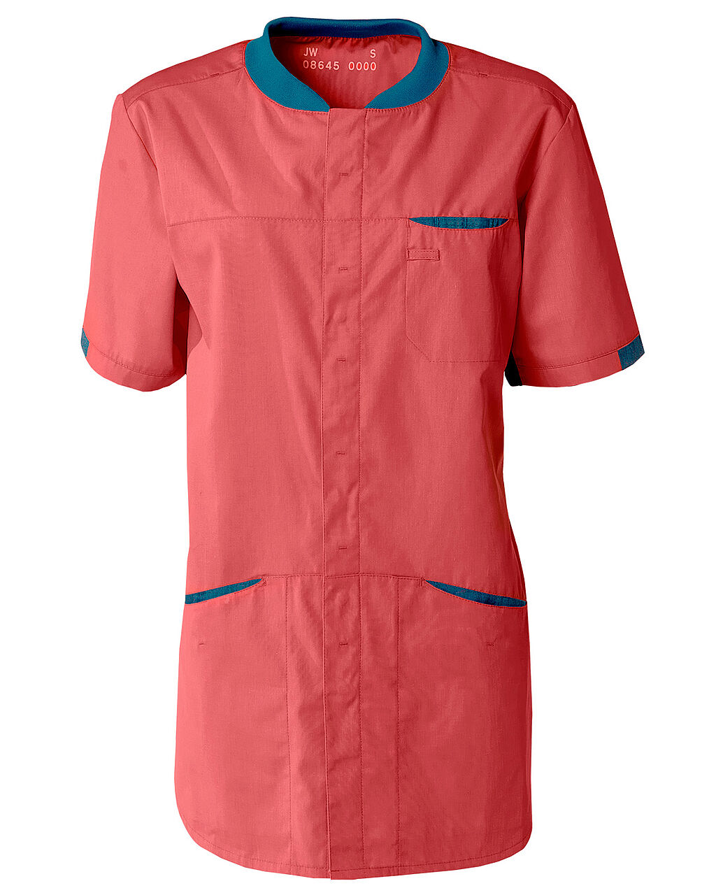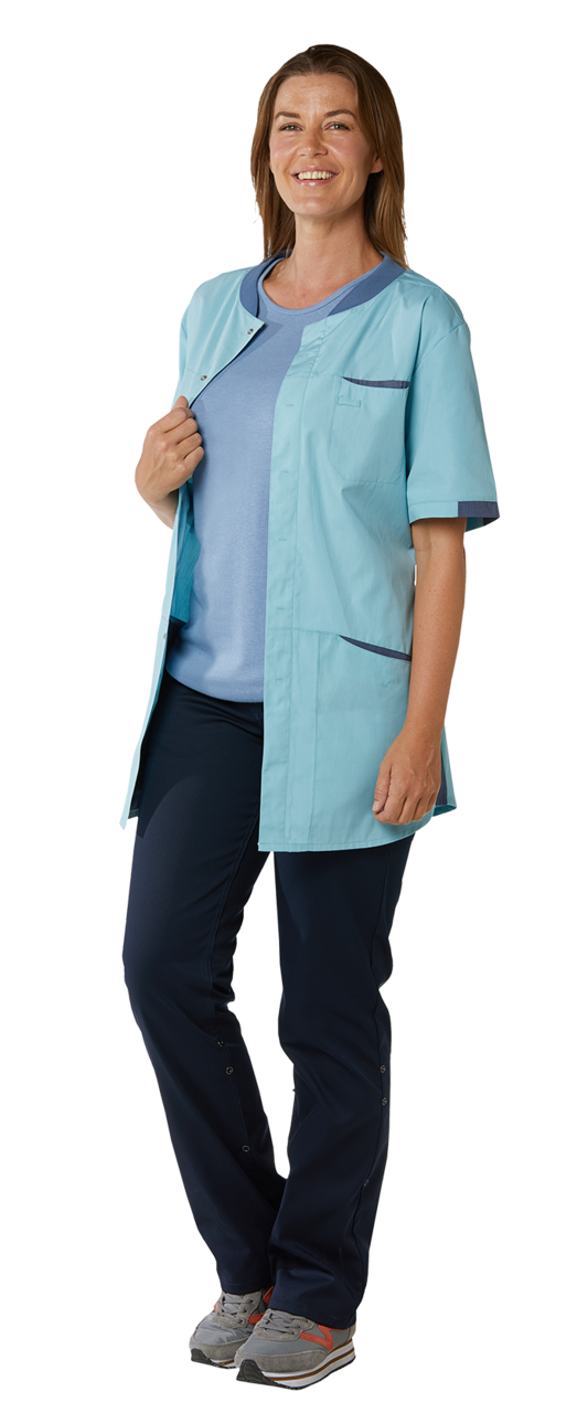 • Kontrastfarve i sider, ved lommer, ærmer og hals