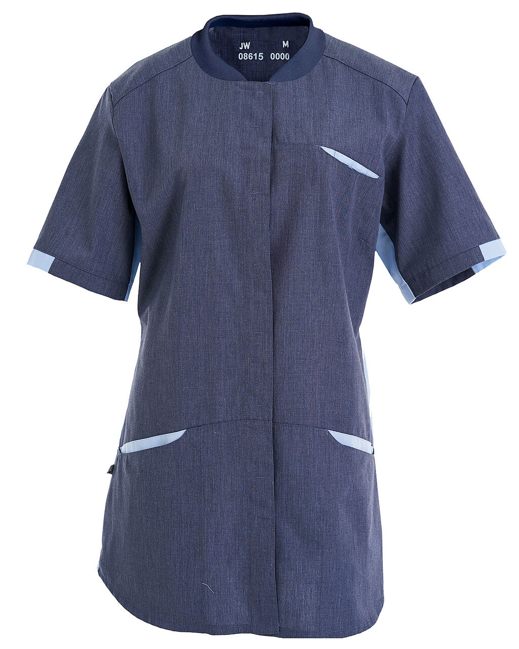 • Kontrastfarve i sider, ved lommer, ærmer og hals